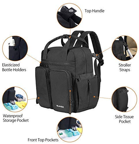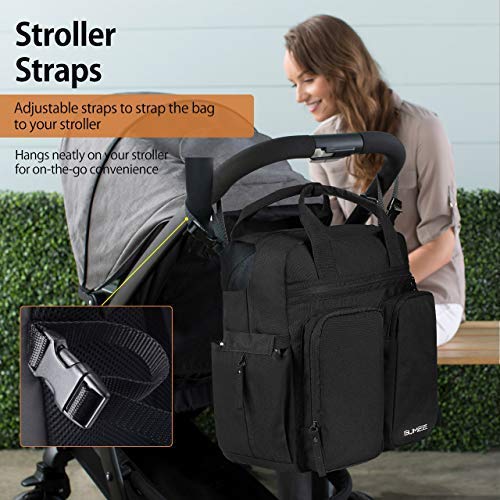 SUMEE Baby Diaper Bag Backpack, Multi-Functional Travel Carry for Mom and Dad with Large Capacity, Stroller Straps and Diaper Changing Pad (Black)