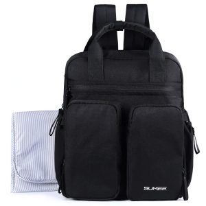 SUMEE Baby Diaper Bag Backpack, Multi-Functional Travel Carry for Mom and Dad with Large Capacity, Stroller Straps and Diaper Changing Pad (Black)